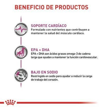 ROYAL CANIN® Cardiac - comida para perros dietético completo para perros adultos. Formulado para apoyar la función cardíaca en caso de insuficiencia cardíaca crónica. Esta dieta contiene un nivel restringido de sodio. Consulte la tabla para el número de lote, el número de registro de fábrica y la fecha de consumo preferente: consulte la información del embalaje. Siga las recomendaciones nutricionales de su veterinario. Para ser almacenado en un lugar fresco y seco.